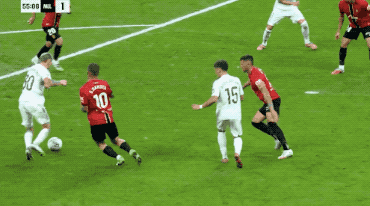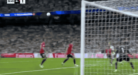第37分钟,皇马终于扳平比分,卡雷拉斯将球传到后点,怀森高高跃起,头球传中,居莱尔无人盯防,轻松头槌破门。