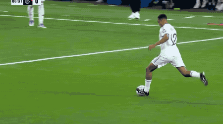 开场只有6分钟,皇马就打出精彩配合,阿诺德展现出色的脚法,精准长传,姆巴佩高高跃起,稳稳停球,将球打进。